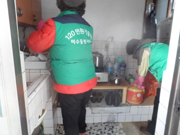 120민원기동대 미수동봉사단(단장 김승봉) 은 1. 23.(금) 미수동 관내 노○○ 홀몸 어르신 댁의 ‘사랑의 집수리 봉사활동’을 펼쳤다.