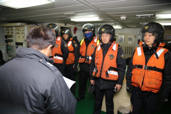 창원해경은 이날 실제 구조훈련을 위해 진해해운의 협조를 구해 장천항에 실제 정박 중인 600t급 러시아 원양어선을 대상으로 선내 진입을 위한 등선과 퇴선유도 방송 등 실제 선박에서 인명구조 훈련을 실시했다.