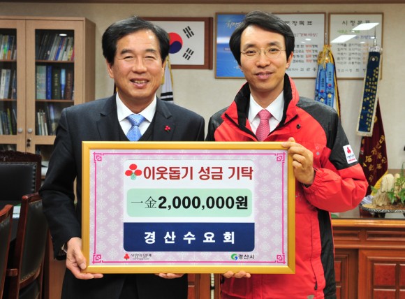 |  | | | ⓒ (주)영남도민일보 | | 경산시 관내 기관장 모임인 경산수요회(회장 최영조)에서는 ‘희망 2015 나눔캠페인 이웃돕기 성금으로 경북사회복지공동모금회에 200만원과 경산의 미래를 이끌어 나갈 우수인재 육성을 위하여 (재)경산시장학회에 장학 기금 500만원을 기탁했다.