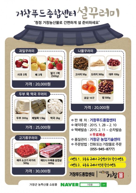 거창푸드종합센터(이사장 김영조)에서 운영 중인 거창몰(www.gcgcmall.net)에서는 우리 고유의 명절 설을 맞이해 오는 2월 2일부터 17일까지 다양한 이벤트를 한다고 밝혔다.