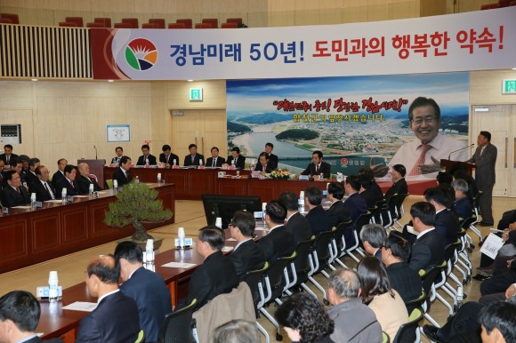윤인국 경남도 정책기획관은 도정 소개에서 남부내륙고속철도 조기 착공 추진, 삼가 양전 산업단지 조성, 한방 항노화산업 클러스터 구축, 황강변 녹색선도공간 조성 계획을 발표하였다.