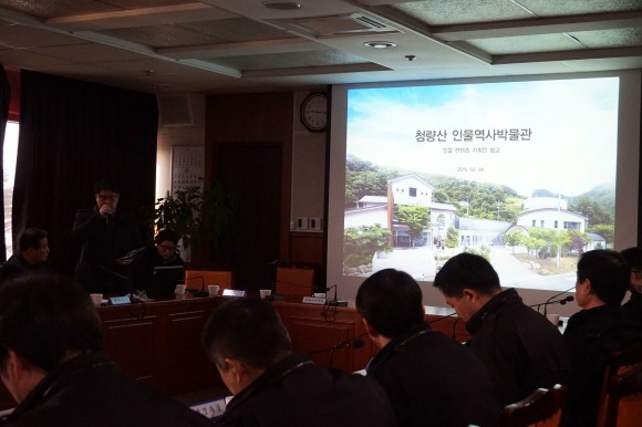 이는 생태탐방로 조성 사업인 3대문화권사업(세계유교선비문화공원조성)의 일환으로 추진 중인 청량산 인물역사관의 전시물 콘텐츠들의 기획 구성에 대하여 보고하는 자리이다. 봉화군은 그동안 청량산 인물역사관 전시물 켄텐츠 기획을 위하여 7차에 걸친 전문가 조언 및 현장 미팅과 유물 조사 작업을 실시하였다.