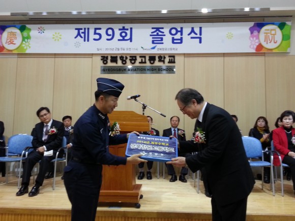 경북항공고등학교(교장 김병호)는 5일 대강당에서 2014학년도 제59회 졸업식을 거행하는 자리는 다른 어느 해 보다 의미가 많았다. 이날 2014 전국 군 특성화고등학교 평가에서 최우수학교로 선정되어, 김병호 교장은 국방부 장관으로부터 상장과 현판을 수상하게 되었다. 공군본부 인사참모부 인재개발교육과장 최정현 대령이 참석하여 국방부 장관을 대신하여 전달하였다.