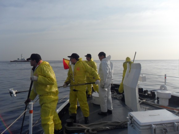 현재 해상에서는 울산해경안전서장이 경비정에 승선, 직접 현장지휘로 가용 경비세력이 총동원되어 예찰활동과 함께 주전동방 3km 해상에서 발견된 옅은 유막(길이300m x 폭20m) 방제작업을 진행 중에 있다.