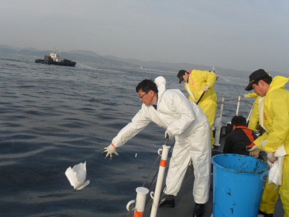 울산 앞바다 기름유출 예찰 및 방제 작업 진행중