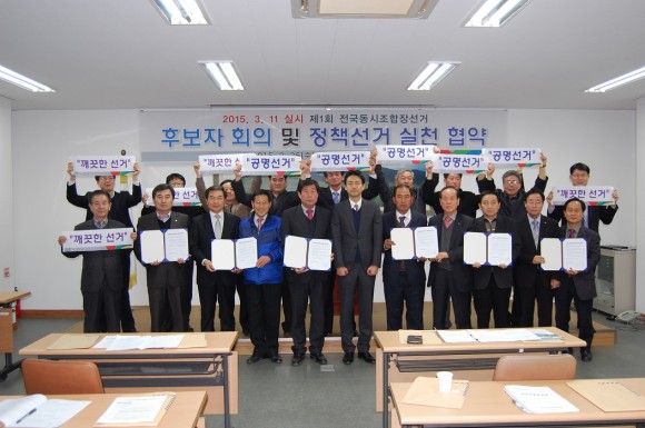 영주시선거관리위원회(위원장 하종민)는 2015년 3월 11일 실시하는 제1회 전국동시조합장선거 안내를 위해 25일 오후 6시 영주시 선거관리위원회 2층 회의실에서 후보자회의 및 정책선거 실천 협약식을 후보자와 조합․선거관계자를 대상으로 개최하였다고 밝혔다.