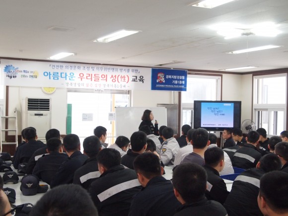 기동1중대(대장 김주명)는, 젊고 혈기왕성한 대원들을 대상으로 건전한 의경문화를 조성하고 집회시위 및 영외활동 시 의무위반행위를 방지하고자, 『새경산 성폭력 상담소』임안나 소장을 초청하여 대원 등 100여명과 함께 눈높이에 맞는 실제 사례 위주 성교육을 실시하였다.