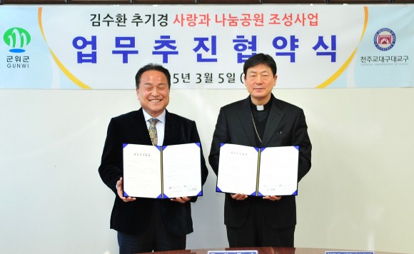 |  | | | ⓒ (주)영남도민일보 | | 군위군(군수 김영만)은 3월 5일, 천주교 대구대교구와 「김수환 추기경 사랑과 나눔공원 조성사업」업무추진 협약을 체결했다.