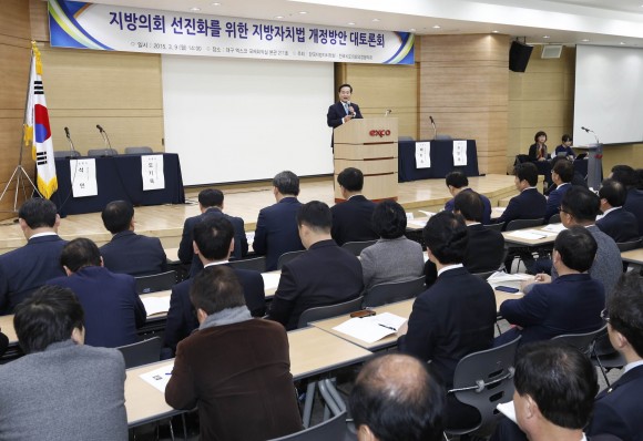 경상북도의회는 전국시도의회의장협의회(회장 이동희, 대구광역시의회 의장)와 한국지방자치학회(회장 권경득)가 3월 9일 대구 EXCO에서 「지방의회 선진화를 위한 지방자치법개정방안 영남권역 대토론회」를 공동으로 개최하고 지방자치법 전면개정을 위한 본격적인 여론수렴에 나섰다고 밝혔다.