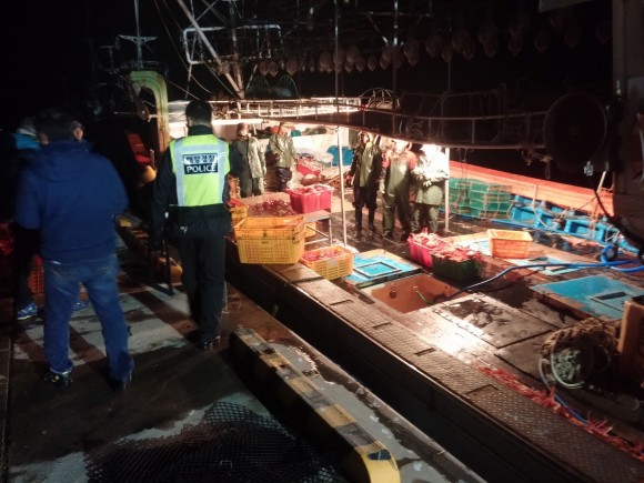 김씨는 주문진선적 M호(40t) 선장으로 지난 3월 6일 오전8시 45분경 후포항에서 선원 7명과 함께 출항하여 3월 11일 오후8시 30분경 독도 근해에서 붉은대게 1,800여마리를 허용어획량 할당을 받지 않고 조업한 혐의를 받고 있다