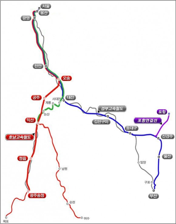 신선 개통으로 수도권에서 호남지역간은 1시간 30분대, 포항역까지는 2시간 10분대로 이용이 가능하다.