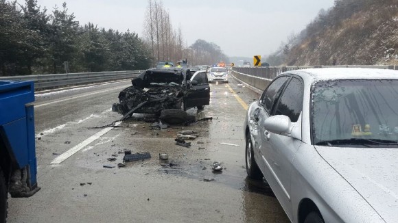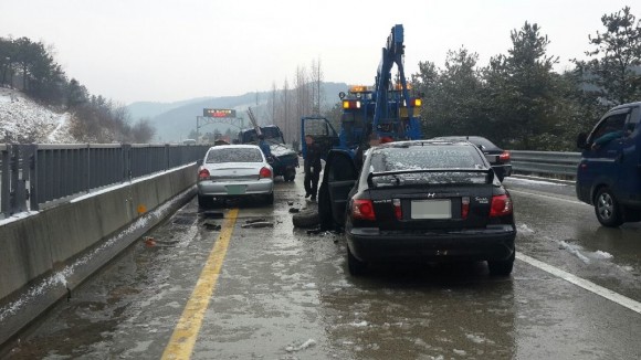 사고 차량은 각각 1차로로 진행중, 사고 3차량이 앞서가는 사고 4차량을 추돌한 1차 교통사고 발생, 뒤 따르던 2차량이 선행사고로 정지한 3차량을 피하기 위해서 핸들을 좌측으로 꺾어 중앙분리대와 충돌후 정지한 것을 뒤 따르던 1차량이 2차량을 추돌하면서 연쇄 추돌 교통사고 발생으로 후방 2km정도 지정체 되었으나 10:00경에 정상 소통 되었다고 고속순찰대는 밝혔다.