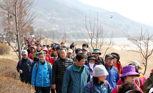 가벼운 옷차림으로 두 개의 행렬이 장사진을 이룬 참가자들은 오순도순 이야기를 나누기도 하고, 포근한 강바람을 맞으며 겨우내 움츠렸던 묵은 한기를 시원하게 털어내기도 했다.
