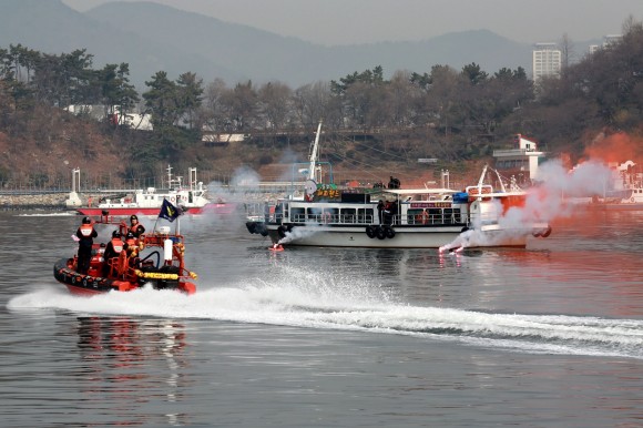 남해해양경비안전본부는 3월 17일(화) 오전 10시부터 창원 돝섬(창원시 마산합포구) 인근 해상에서 14개 기관과 선박 17척, 동원인력 200여명이 “2015 해양안전 종합훈련”을 실시했다고 밝혔다.
