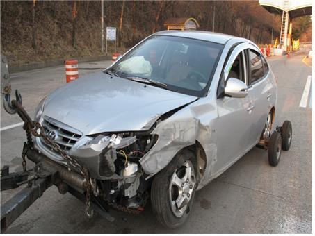 2015. 3. 24. 05:30경 중앙고속도로,하행선 119.4km지짐 칠곡군 동명면 송산리에서 선행 단독사고로 1명의 사망자를 낸 사고가 발생했다. |  | | | ⓒ (주)영남도민일보 | | 8×어 3×××호 승합차(운전자 김◦◦, 35세)은 안동쪽에서 대구방면으로 진행 중, 반대방향에서 선행 단독사고 후 중앙분리대를 넘어온 보행자(운전자)를 앞범퍼로 추돌하여 넘어뜨리고, 넘어진 보행자를 #1차량 뒤쪽에서 진행해오던 번호 불상의 화물차(4.5톤이상 화물 탑차 추정)차량이 역과한 후 현장을 이탈한 사고로 보행자 신◦◦(35세)씨가 사망했다.
