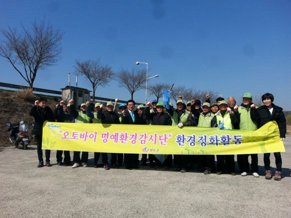 청도군 노인오토바이 명예환경감시단(단장 이현기)은 24일 청도천 떡버들공원에서 40여명의 회원이 모여 봄맞이 환경정화 활동을 실시했다.