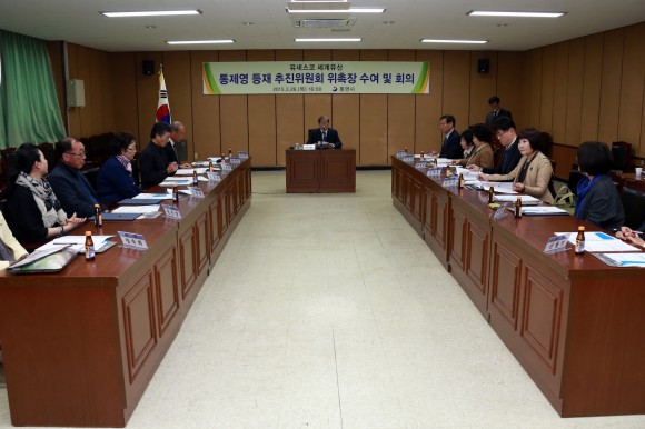통영시(시장 김동진)는 지난 2월 통영시 유네스코 세계유산 등재 추진위원회 설치 및 운영 조례 제정에 이어 3월 26일 오후 4시 시청회의실에서 통제영 유네스코 세계유산 등재 추진위원회 위원들에게 위촉장을 수여 한 후 회의를 개최했다.