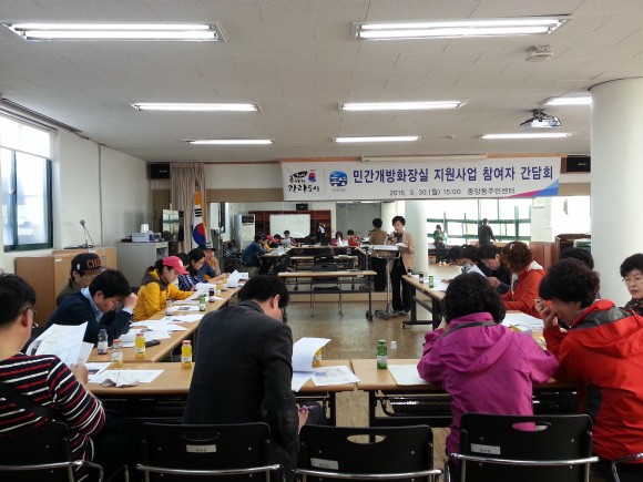중앙동 중섭공방 외 13개 민간업소가 참여를 희망하여 3월 30일 중앙동주민센터 회의실에서 평가단과 함께 간담회를 가졌으며, 사업의 취지와 참여업소 준수사항, 관리 운영 등 실질적인 운영방법에 대한 자세한 설명과 참여업소, 평가단 소개 등 본 사업이 목적에 맞게 추진될 수 있도록 협조를 당부 하였다.