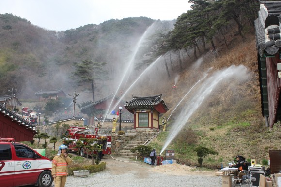 특히 소방력 출동에 의한 연소확대 방지와 문화재 보호 등에 중점을 기울여 ▲출동단계별 안전확인 ▲최적의 차량부서 위치 선정 및 진압작전 전개 ▲유관기관 협업을 위한 현장상황판단회의 ▲문화재 반출과 인접 지역 인명대피 ▲헬기를 활용한 공중진화와 펌프차량과 진압대원의 지상진화로 입체적인 합동진화체계 확립을 위주로 진행됐다.