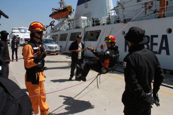 이날 훈련에는 해경과 소방이 국민안전처로 통합되어 최초로 실시되는 구조 훈련으로 포항해경 122구조대(11명)와 한국해양구조협회 경북지부 경주․포항구조대(14명), 북부소방서 구조대(8명)가 참가해 전복․침몰선, 폐쇄구역, 협시계 잠수숙달 훈련, 수중수색 훈련, 해안근접사고 대응 연안구조장비 숙달 및 등․하선 훈련 등 지역 돌발상황 발생시 대처법 훈련을 하였다.