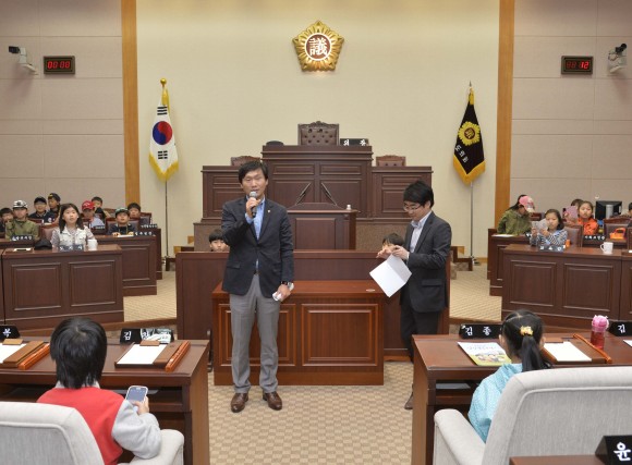 도의회를 방문한 학생들은 질문과 답변의 시간을 가지며 의장석에 올라 임시의장 역할로 회의진행과 의사봉을 두드리는 등 체험학습으로 의미있는 시간을 보냈다.