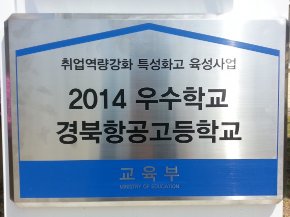 경북항공고등학교(교장 김병호)는 22일 충남대학교 정심화홀에서 실시된 '2014 취업역량 강화사업 우수학교 및 유공교원 시상식에서 우수학교로 선정되어 현판과 교육부 장관상을 수상하였다.