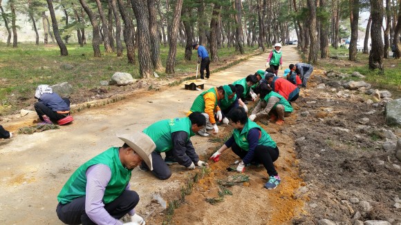 운문면은 4. 24일 운문사 솔바람길 산책로 1.2km 구간에 맥문동 및 꽃무릇 2만본을 1차로 식재 완료하였다.