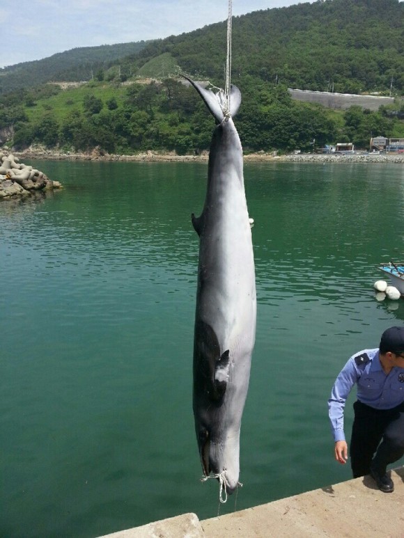 창원해경에 따르면 부산 가덕도 대항 자망어선 ‘C’호(1.73톤) 선장 이 모씨는 가덕도 남쪽 900여 미터 해상서 자망 그물에 걸려 죽어 있는 밍크고래(길이 4M, 둘레 1.5m, 무게 약 2.5톤)를 발견해 해경에 신고를 했다.