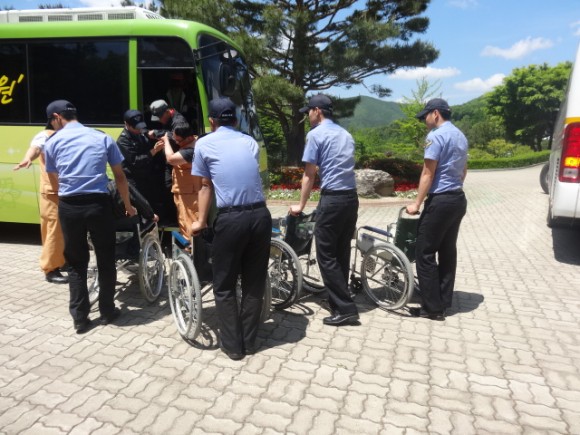 이번 행사에는 포항해경 직원 및 의경들로 구성된 ‘동그라미 봉사단’이 참여했으며, 이들은 이날 수목원을 방문해 노인들게 도시락 배분, 휠체어 밀어주기 등 하루 동안 함께하며 도움의 손길을 전했다.