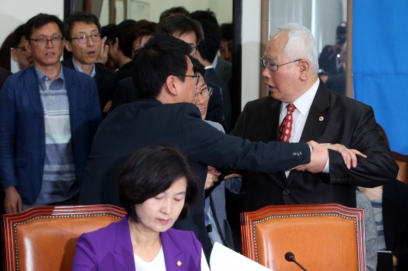 |  | | | ⓒ (주)영남도민일보 | | 20일 오전 서울 여의도 국회에서 열린 새정치민주연합 최고위원회의 시작 전 한 원로 당원이 회의장으로 들어와 이종걸 원내대표 등에게 "비우고 또 비우고 버리고 또 버리면서 당을 살려내자"고 항의하다 당직자들에에 제지당하고 있다.