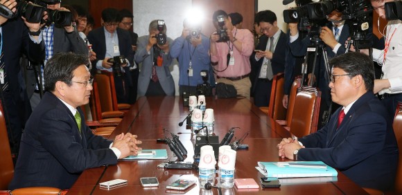 |  | | | ⓒ (주)영남도민일보 | | 공무원연금개혁특별위원회 여야 간사인 새누리당 조원진 의원과 새정치민주연합 강기정 의원이 최근 서울 여의도 국회에서 가진 회동에서 대화를 나누고 있다