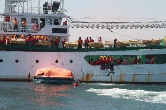 이날 훈련에는 1000톤급 경비함정 등 7척, 고속단정 4대, 헬기1대, 122구조대 등 경찰관과 한국해양구조협회 포항구조대원, 경북교육청 관계자, 포항해양과학고 교사 및 포항과학기술고 학생, 선원 등 300여명이 참가했다.