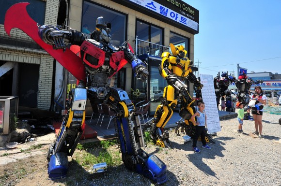 |  | | | ⓒ (주)영남도민일보 | | 지난 25일 오후 경북 포항시 남구 송도해수욕장 인근 커피숍 앞에 트랜스포머에 출연한 범블비와 태권브이 등 로봇군단이 나타나 동심을 사로잡고 있다.