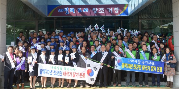 이홍기 거창군수는 “자연스럽게 우러나오는 전 군민의 나라사랑하는 마음을 결집해, 평화 통일의 기반을 구축하고, 지역발전의 원동력이 될 수 있도록 ‘광복 70년, 태극기 사랑 70일 운동’에 많은 관심과 참여를 당부한다”고 말했다. 김종욱 기자 yndm@yndm.kr