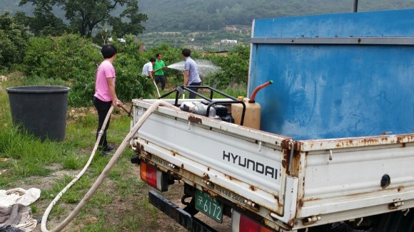 최근 계속되는 극심한 가뭄으로 영농철 농업용수가 부족하여 고심하고 있는 관내 농가에 면 보유 급수차량을 이용해 가뭄피해 최소화에 노력을 다 하고 있다.