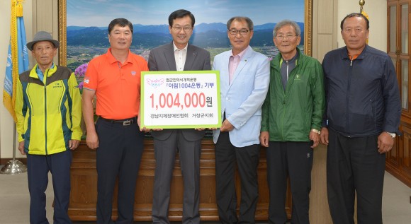 지난 1일 경남지체장애인협회 거창군지회(지회장 심재수)는 거창군을 방문해 임원 및 전 회원들이 모금한 1백만4천원을 아림1004운동 성금으로 기탁했다.