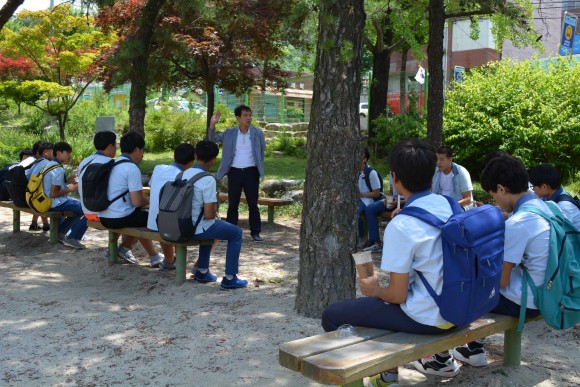 2015. 7. 3(금) 점심시간을 활용하여 영주중학교 운동부 학생 20여명을 대상으로 학교내 청운공원에서 김종재 여성청소년과장, 학교전담경찰관 3명이 운동부학생으로서 학업과 운동 병행에 대한 어려움, 학교폭력에 대한 개인적인 견해등에 대하여 여름 별미인 팥빙수를 먹으면서 자유로운 대화의 장을 마련하였다.