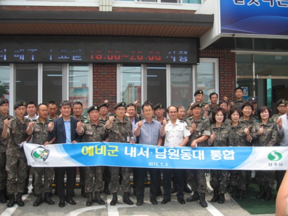 7월 3일 상주시 남원동주민센터에 예비군 내서면대와 남원동대를 통합한 ‘내서․남원동대’의 통합중대 사무실 현판식을 가졌다.