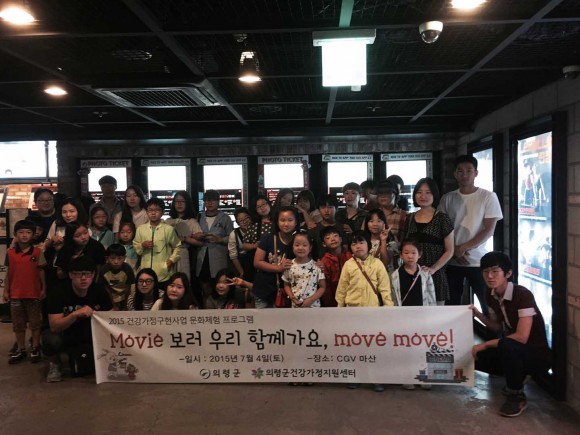 지난 4일 토요일 ‘Movie(영화)보러 우리 함께가요, move move!’ 라는 주제로 40명의 가족과 함께 CGV 마산(창원시 마산회원구 소재)을 방문하여 영화관람 및 문화체험을 하였다.