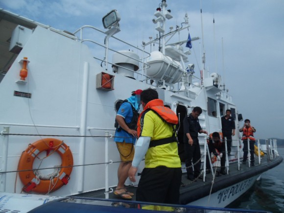 14:35경 현장에 도착한 P-107정은 레저객 건강에 이상 없음을 확인한 후 경비정에 편승시키며 레저보트는 예인을 실시하였다. 한편, 모항 항 인근에서 대기 중 이던 모항 안전센터 순찰정은 안전 입항을 위해 P-107정으로부터 레저객 및 레저보트를 인수 받아 15:15경 모항항에 무사 입항조치 하였으며 안전계도 후 귀가 조치하였다.
