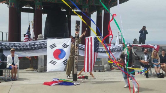 미국 독립기념일 LA 산페드로 우정의 종각에 한‧미 우정을 다짐하는 장승설치와 장승퍼포먼스