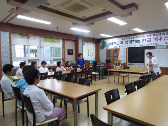 한글 깨우침 교실은 고전초등학교 3학년에 재학 중인 할머니 학생 8명을 비롯해 관내 거주하는 결혼이민자와 비문해자들을 수강생으로 모집해 오는 11월 말까지 운영된다.