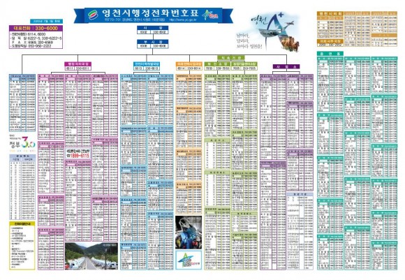 개편된 행정전화번호표에는 항공, 말(馬) 등의 지역신성장 동력산업을 대표하는 이미지와 치산관광지 캠핑장, 보현산천문과학관 이미지를 삽입하여 시정 홍보 공간으로도 활용하였다.