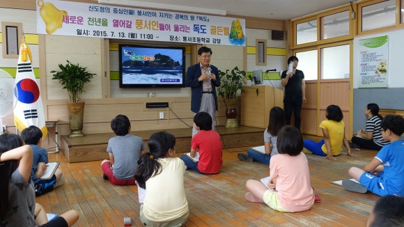 풍서초등학교(교장 이예걸)는 7월 13일(월) 강당에서 학생들에게 우리의 땅 독도의 중요성을 깨닫게 하고, 독도를 지키려는 의지를 갖도록 하기 위해 3~6학년 학생들이 참여하는 ‘독도 골든벨’ 퀴즈 대회를 ‘독도는 우리 땅’ 노래를 시작으로 개최하였다.