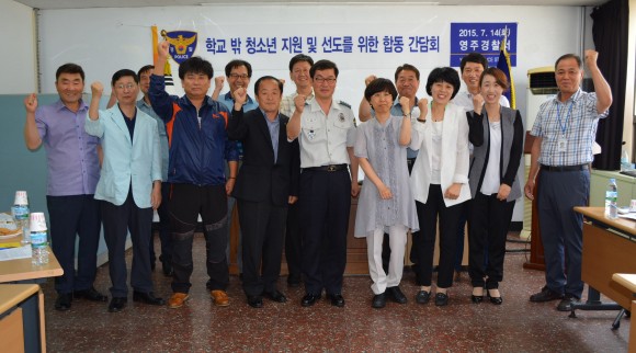 영주경찰서(서장 김한섭)는 2015. 7. 14(화) 소회의실에서 최근 학교 밖 청소년들의 범죄 증가 및 가출팸 결성등 사회적으로 문제가 되고 있는 학교 밖 청소년 지원 및 선도를 위하여 시청, 교육청, 학교 밖 청소년 지원센터등 유관기관 간담회를 개최하였다.