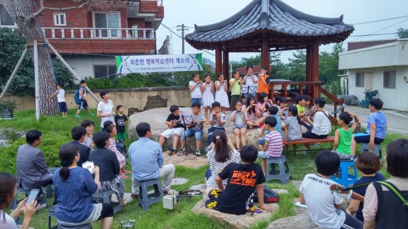와촌면행복학습센터는 경산시 내 유일하게 읍면동학습관이 운영되지 않고 도심권에서 지리적 접근성이 떨어진 와촌면 주민의 비교적 열악한 교육환경을 개선하기 위하여 지난 3월 경상북도 주관 공모사업인 ‘2015 행복학습센터 지정․운영사업’ 에 선정되어 도비 10백만원을 3년 연속 지원받고 경산시가 10백만원 대응투자하여 와촌책마루작은도서관(관장 임종숙)주관으로 시행되는 사업이다.