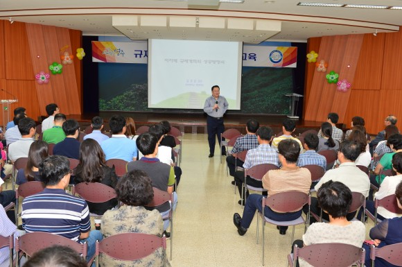 |  | | | ⓒ (주)영남도민일보 | | 영주시는 23일 시청 대강당에서 직원 250여명을 대상으로 전문가를 초빙하여 ‘지자체 규제개혁의 성공방정식' 이라는 주제로 규제개혁 역량강화 교육을 실시했다.이번 교육은 한국규제학회 대외협력위원장 겸 연구이사로써 규제개혁분야 전문가인 김성준 교수(경북대학교)를 초빙해 규제개혁의본질과 현실태 및 개선방향과 관련사례를 들면서 공무원들의 규제개혁에 대한 이해를 높이는데 큰 호응을 이끌어냈다.