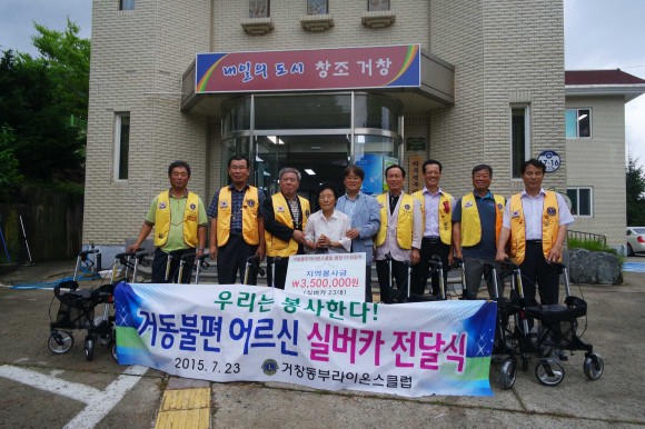|  | | | ⓒ (주)영남도민일보 | | 국제라이온스협회 355-E지구 거창동부라이온스클럽(회장 강시규)은 지난 23일 가북면에 거주하시는 어르신들의 보행불편을 해소하기 위한 실버카 10대를 기증했다.