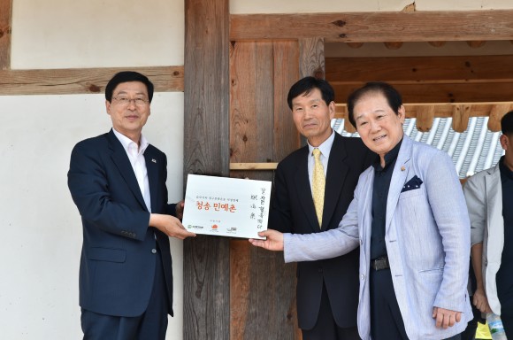 민박업체 2곳 (청송한옥민예촌, 송소고택) 침구류 전달 및 현판 부착