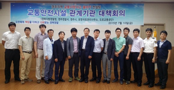 7.9일 경주세계문화엑스코 조직위원회 회의실에서 경찰, 경상북도, 경주시, 포항국토관리사무소, 도로교통공단 등 18명이 참석한 가운데 안전한 교통환경 개선을 위한 대책회의에서는 주민들이 체감하는 교통사고 위험지역 20개소에 대한 협의를 통해 교통단속 및 홍보, 교통안전시설물 설치 등 66개 즉시․단기․중기․장기과제로 분류하여 교통환경 개선을 추진하기로 하였다.